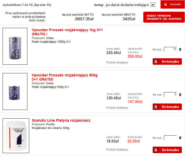 - Formularz zbiorczego wrzucania produktów do koszyka